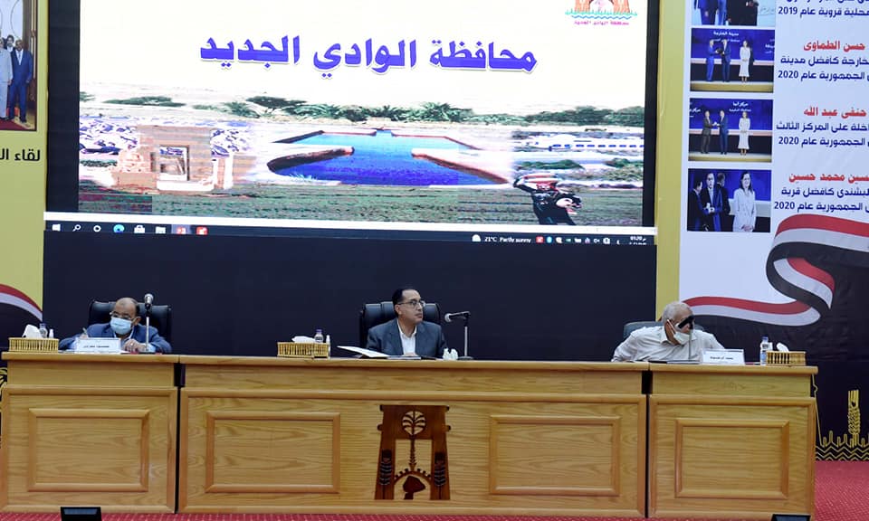 وفي مستهل اللقاء، أعرب رئيس الوزراء عن سعادته بتواجده اليوم على أرض محافظة الوادي الجديد، بصحبة عدد من أعضاء الحكومة، وبحضور أعضاء مجلسي النواب والشيوخ، والقيادات التنفيذية بالمحافظة، مؤكدا رغبته في إتمام هذه الزيارة منذ فترة للمحافظة التي تتمتع بانفرادها بالعديد من الميزات النسبية، كما أعرب في الوقت نفسه عن سعادته بحجم التطورات والإنجازات التي حدثت على مستوى المحافظة في عدد من القطاعات، والتي لمسها خلال هذه الزيارة مقارنة بآخر زيارة للمحافظة منذ فترة.