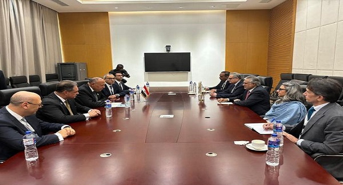 التقي سامح شكري وزير الخارجية ب “محمد إسحق دار” نائب رئيس الوزراء ووزير خارجية باكستان، يوم ٤ مايو الجاري، وذلك علي هامش مشاركتهما في أعمال الدورة الخامسة عشر لمؤتمر القمة الإسلامي المنعقد حاليا في بانجول.