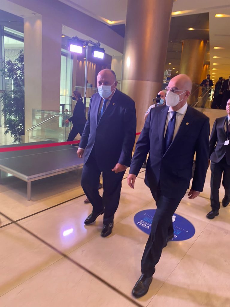 بالصور.. شكري يلتقي مع وزراء الخارجية المشاركين في الاجتماع الوزاري من كل من اليونان وقبرص وفرنسا