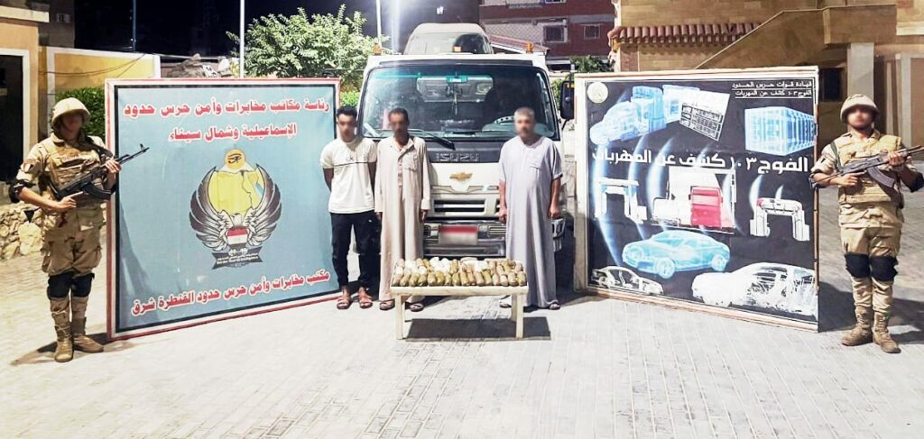 استمراراً لجهود القوات المسلحة في تأمين حدود الدولة على كافة الاتجاهات الإستراتيجية، نجحت قوات حرس الحدود بالتنسيق مع الأفرع الرئيسية للقوات المسلحة والتشكيلات التعبوية في الفترة من 1 / 9 / 2024 حتى 18 / 10 / 2024 فى توجيه ضرباتها الناجحة للعناصر الإجرامية والمهربين وإجهاض المخططات والمحاولات التى تستهدف الإضرار بالأمن القومي المصرى.