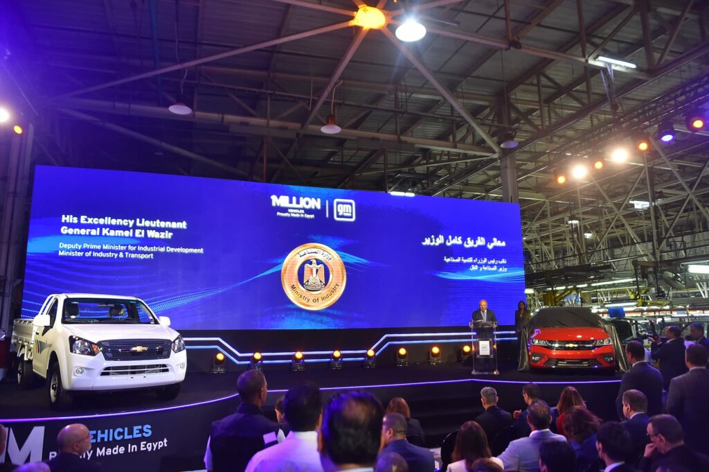 و أعرب الوزير – في بداية كلمته- عن سروره لتواجده في الاحتفال بأول شركة خاصة لصناعة السيارات في مصر تنتج مليون سيارة محلية، بالتعاون مع جنرال موتورز العالمية والتي أسست أول صرح صناعي إقليمي لجنرال موتورز في الإسكندرية منذ نحو 90 عاماً، وتقوم بالتصدير إلى دول منطقة اليورومتوسطي، والشرق الأوسط وإفريقيا.
