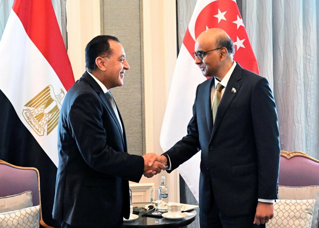 استقبل ثارمان شانموجار أتنام، رئيس جمهورية سنغافورة؛ بمقر إقامته، الدكتور مصطفى مدبولي، رئيس مجلس الوزراء، وذلك في إطار الزيارة الرسمية التي يقوم بها رئيس سنغافورة لمصر، والتي تهدف إلى تعزيز العلاقات الثنائية بين البلدين.