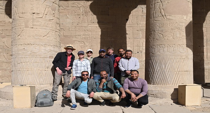 بالصور .. مشروع ترميم معبد إدفو يكشف عن نقوش ملونة لأول مرة بسطح المعبد