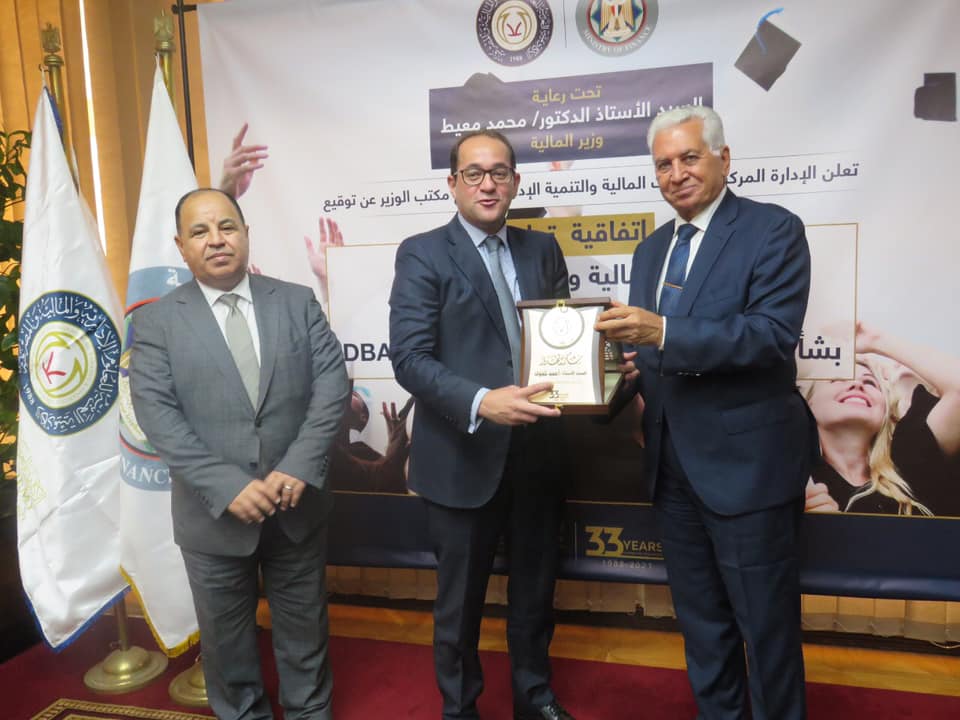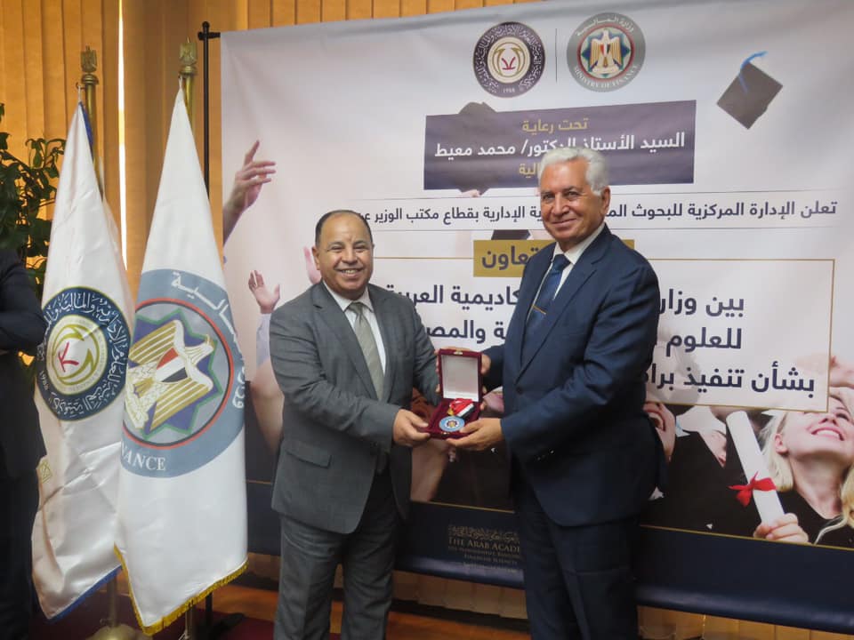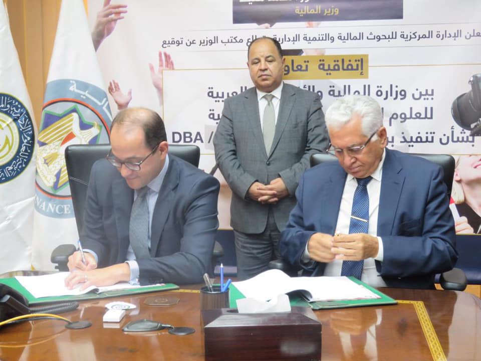 وقع بروتوكول التعاون أحمد كجوك، نائب الوزير للسياسات المالية والتطوير المؤسسى، ومصطفى هديب رئيس الأكاديمية العربية للعلوم الإدارية والمالية والمصرفية، بحضور خالد نوفل مساعد الوزير للتطوير الإدارى، وعبدالعزيز هاشم مستشار الوزير للتطوير المؤسسى، وجمال حسين رئيس الإدارة المركزية للبحوث المالية والتنمية الإدارية.