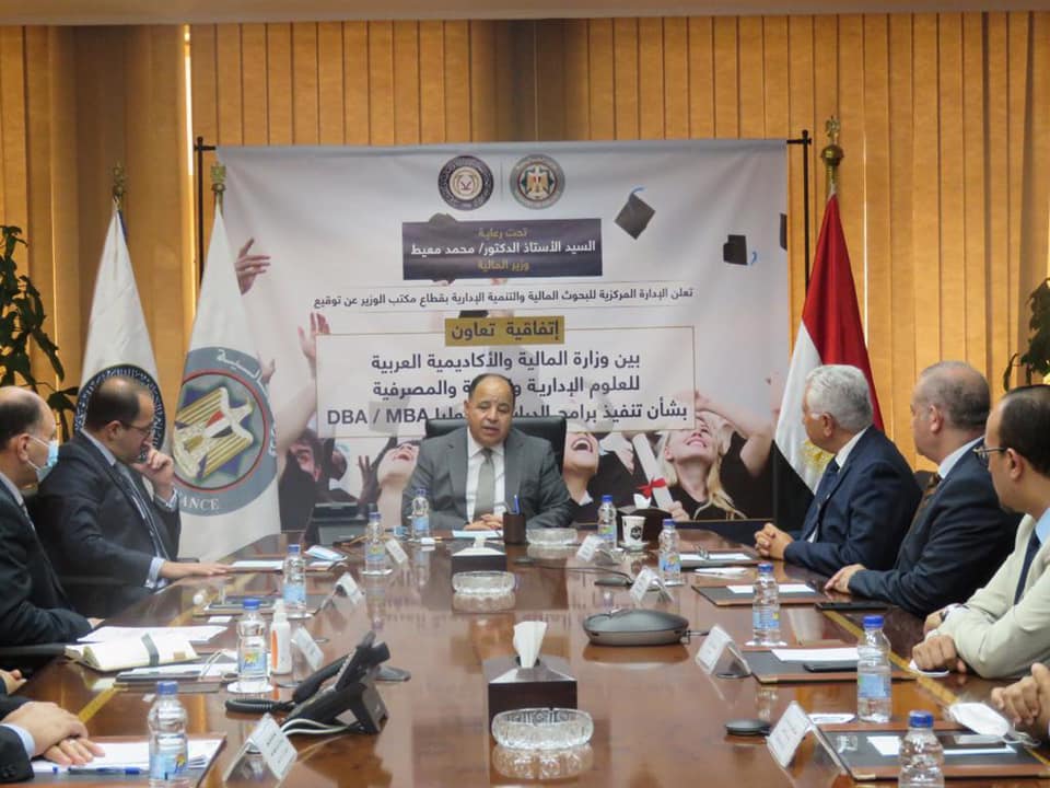 قال جمال حسين رئيس الإدارة المركزية للبحوث المالية والتنمية الإدارية بوزارة المالية، إن هذا البروتوكول يأتى فى إطار توجه وزارة المالية نحو رفع كفاءة العنصر البشرى من خلال الاستفادة من خبرات الأكاديمية العربية للعلوم الإدارية والمالية والمصرفية المتميزة في مجال تنفيذ العديد من برامج التدريب وبرامج الدراسات العليا المهنية للعاملين بوزارة المالية فى الالتحاق بالدراسات العليا التى تشمل: الماجيستير المهنى«MBA»، والآخر للدكتوراه المهنية «DBA» فى إدارة الأعمال والمصارف، والأسواق المالية، والموارد البشرية، والإدارة المالية، والتسويق.