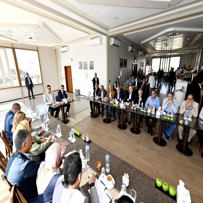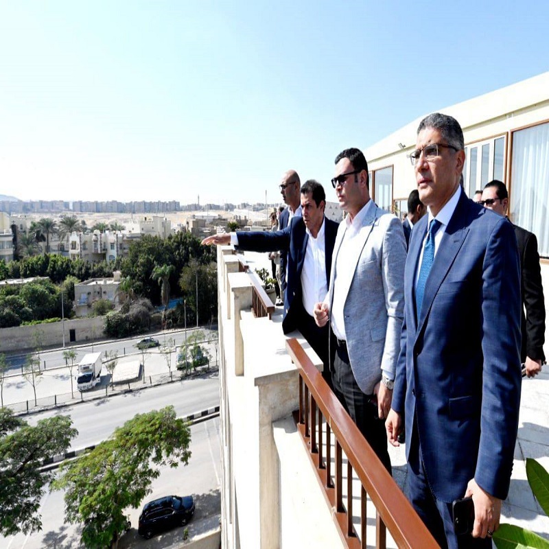 بالصور..وزير الإسكان ومحافظ الجيزة يعقدان اجتماعاً بالمنطقة المحيطة بالأهرامات لاستعراض مخطط تطويرها