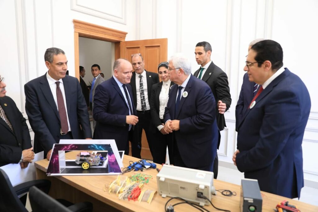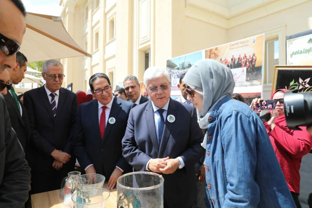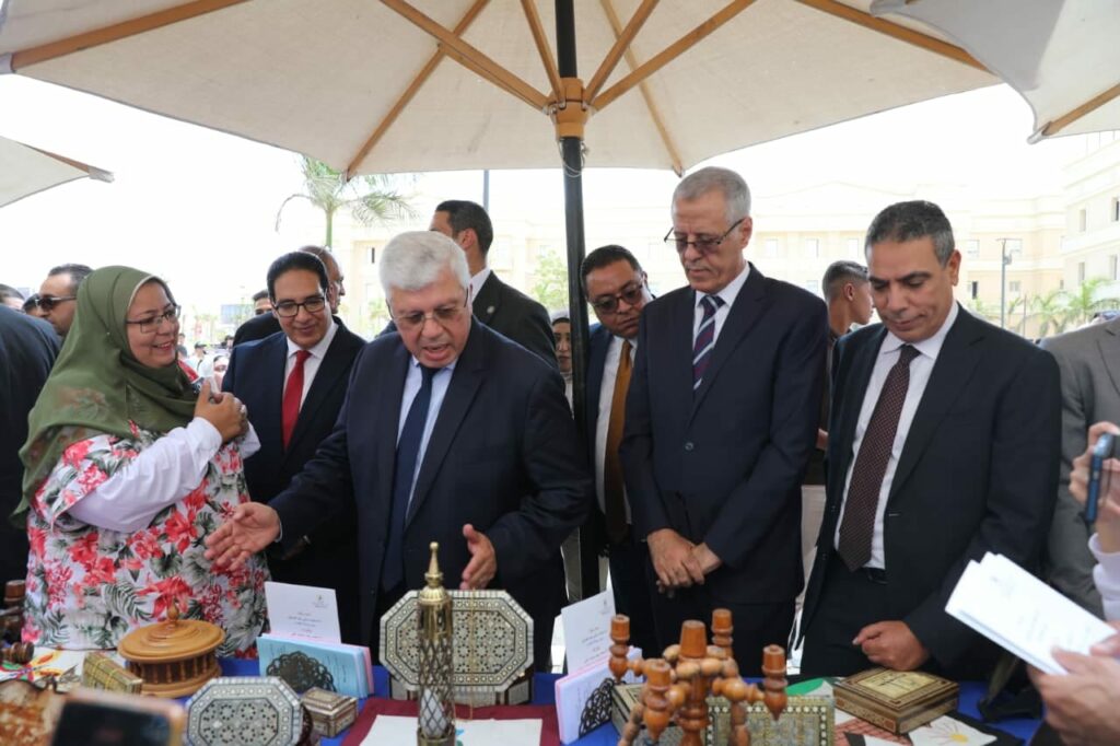 كما افتتح الدكتور أيمن عاشور والدكتور محمد سامي، معرض الأنشطة والمبادرات الطلابية المُقام بالحرم الجامعي، والذي عرض فيه الطلاب العديد من الأعمال الفنية واليدوية المتميزة، فضلًا عن الاستماع إلى عدد من العروض الموسيقية والغنائية الوطنية.
