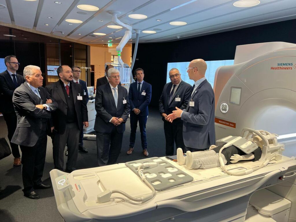 وفي إطار اهتمام وزارة التعليم العالي والبحث العلمي بتحسين البنية التحتية للمراكز الجامعية للأورام واستحداث برامج مُستدامة للتنمية البشرية في مجال الرعاية الصحية وخاصة في مجال الأورام وربط ذلك بسوق العمل المحلي والإقليمي والدولي، قام الوزير والوفد المُرافق لسيادته بزيارة لكُبرى الشركات الألمانية في مجال الرعاية الصحية وعلى رأسها شركة سيمنز هيلثنيرز بمقرها الرئيسي بمقاطعة بافاريا بجنوب ألمانيا.