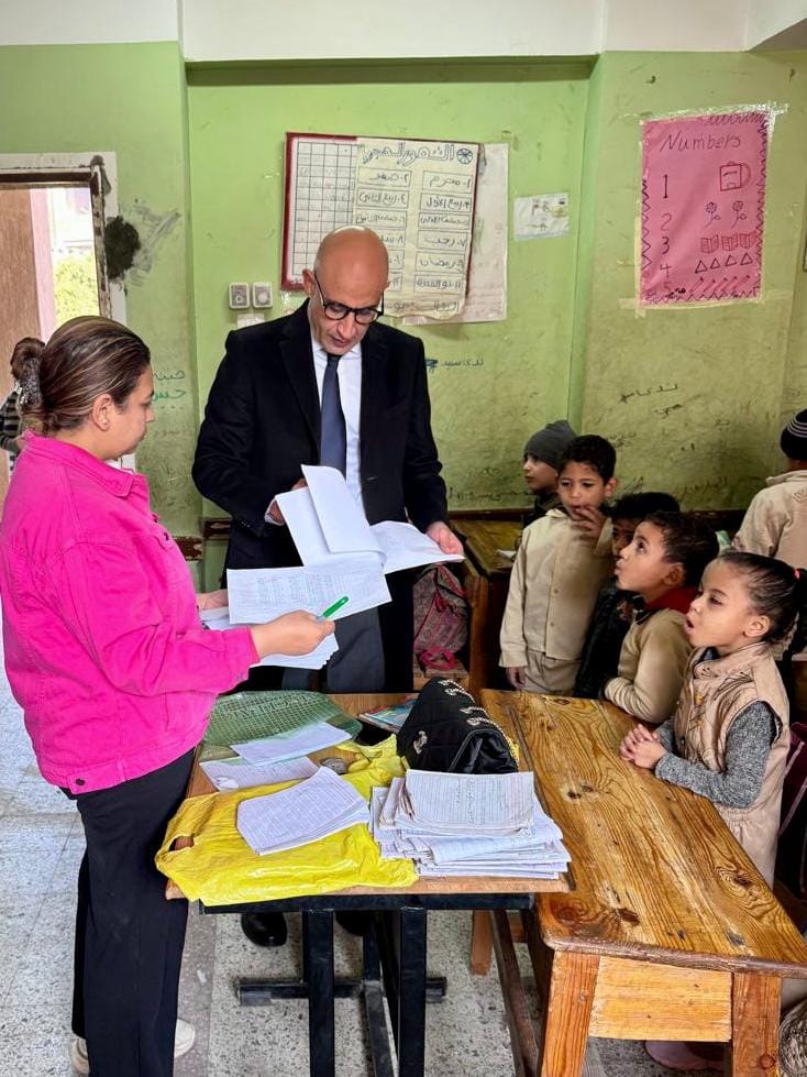 ثم توجه الوزير إلى مدرسة “معصرة أبو صير الجديدة الابتدائية”، التي يبلغ عدد طلابها 298 طالبًا، حيث حرص خلال تفقده المدرسة على متابعة نسب حضور الطلاب، ومراجعة دفاتر تسجيل درجات الطلاب في التقييمات الأسبوعية؛ للاطمئنان على مستوى التحصيل الدراسي.