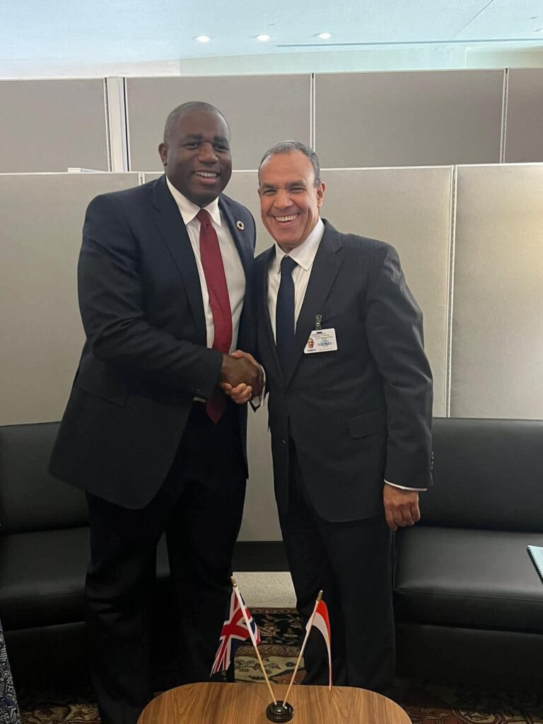 التقى د. بدر عبد العاطى، وزير الخارجية والهجرة، اليوم الأربعاء، مع ديفيد لامي وزير خارجية المملكة المتحدة، وذلك على هامش أعمال الدورة 79 للجمعية العامة للأمم المتحدة في نيويورك.