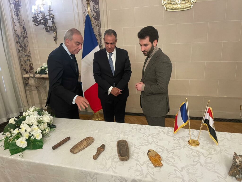بالصور..وزير الخارجية يشارك فى مراسم استرداد قطع أثرية مصرية بمقر السفارة المصرية فى باريس