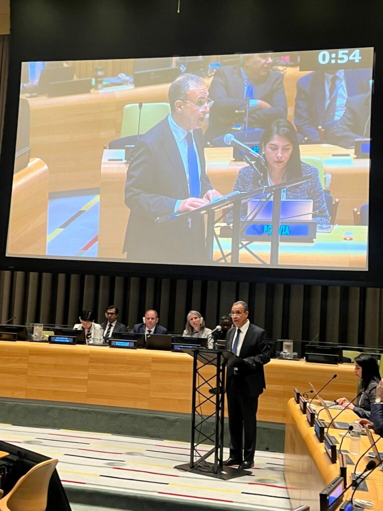 وأضاف بأن القضاء على الأسلحة النووية بشكل كامل، قابل للتحقق ولا رجعة فيه، هو الضامن الوحيد ضد استخدامها، حيث تظل احتمالية اندلاع مواجهات عسكرية تفضي إلى استخدام السلاح النووي قائمة في ظل حالة الاستقطاب الدولي الراهنة. كما نوه السيد وزير الخارجية في كلمته إلي ما نشهده اليوم من تهديدات علنية وضمنية باستخدام الأسلحة النووية، وآخرها في سياق العدوان اللاإنساني على غزة، بما يجعل من الحظر الصريح والشامل للأسلحة النووية خطوات ضرورية ومُلحة لا تحتمل المزيد من التأجيل أو التسويف.