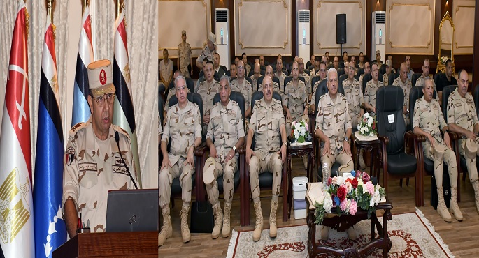 كما وجه إلى حرص القيادة العامة للقوات المسلحة على تعظيم إمكانياتها وقدراتها بإنشاء قواعد عسكرية متكاملة على كافة الاتجاهات الإستراتيجية للدولة لتتضمن قوات برية وتجميعا قتاليا يشتمل على موانئ بحرية وقواعد جوية وإمدادها بأحدث نظم التسليح العالمية لتكون مرتكزا لتنفيذ أي مهام توكل إليها بكفاءة واقتدار خاصة في ظل التحديات التي تواجهها الدولة المصرية.