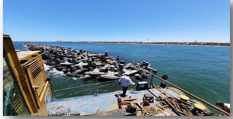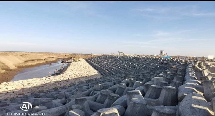 وأضاف سيادته أنه يجرى تنفيذ عملية حماية المنطقة غرب لسان رأس البر من خلال تدعيم وإعادة تأهيل حواجز أمواج رأس البر ١ & ٢ ، بطول ٢٠٠ متر لكل حاجز ، والعملية عبارة عن تدعيم الحواجز بكتل خرسانية والقدمات بالأحجار والكتل الخرسانية .