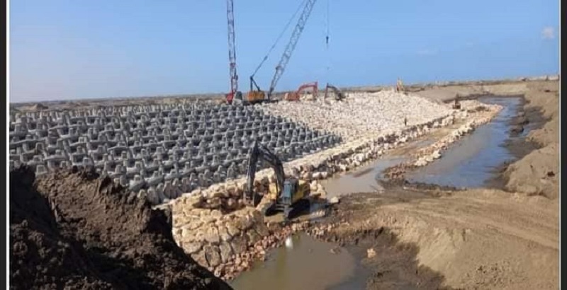 كما تم البدء فى تنفيذ عملية حماية شواطئ المنطقة شرق ميناء دمياط وأمام مدينة رأس البر عن طريق انشاء حاجزي أمواج رقمي ٩ & ١٠ بطول ٢٢٥ متر لكل حاجز .