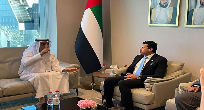 التقي الدكتور أشرف صبحي وزير الشباب والرياضة، رئيس المكتب التنفيذي لمجلس وزراء الشباب والرياضة العرب ،اليوم الأحد، السيد أحمد بالهول الفلاسي وزير الدولة لريادة الأعمال والمشاريع الصغيرة والمتوسطة، رئيس الهيئة العامة للرياضة الإماراتي ضمن زيارته لمدينة دبي بدولة الإمارات العربية المتحدة.