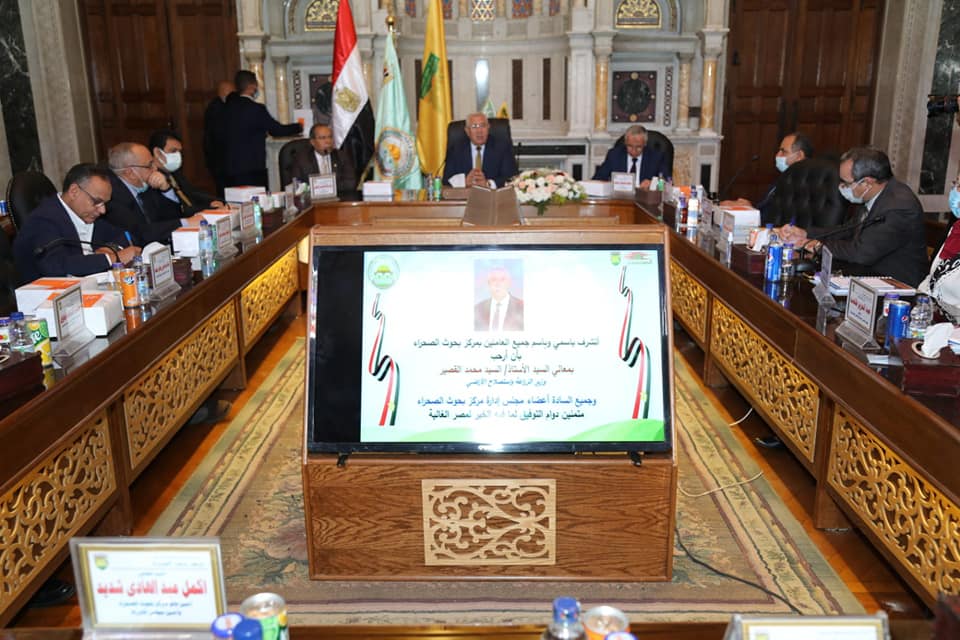 خلال رئاسته لمجلس إدارة مركز بحوث الصحراء وجه السيد القصير وزير الزراعة واستصلاح الأراضي التهنئة للعاملين في المركز بمناسبة مرور 70 عاما على إنشائه كأول مركز متخصص في المنطقة لأبحاث الصحراء ومشيدا بجهود باحثي المركز في خدمة الزراعة المصرية وأكد على توجيهات فخامة الرئيس عبدالفتاح السيسي رئيس الجمهورية بتطوير البحث العلمي التطبيقي الذي يسهم في خدمة المجتمع والتعامل مع التحديات الجديدة التي تواجه الدولة المصرية .