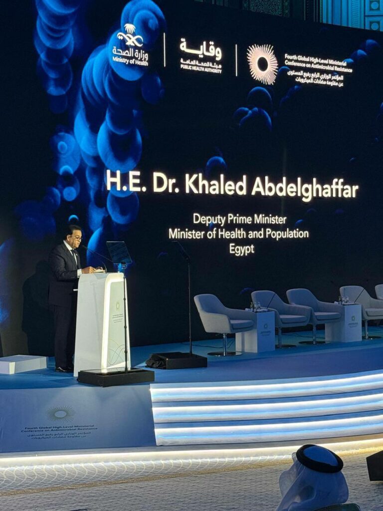 جاء ذلك في كلمة للوزير خالد عبدالغفار، تحت عنوان «جهود مصر في الوقاية من مقاومة مضادات الميكروبات ومكافحتها» وذلك بالمؤتمر الوزاري العالمي الرابع، بشأن مقاومة مضادات الميكروبات، الذي تستضيفه المملكة العربية السعودية.