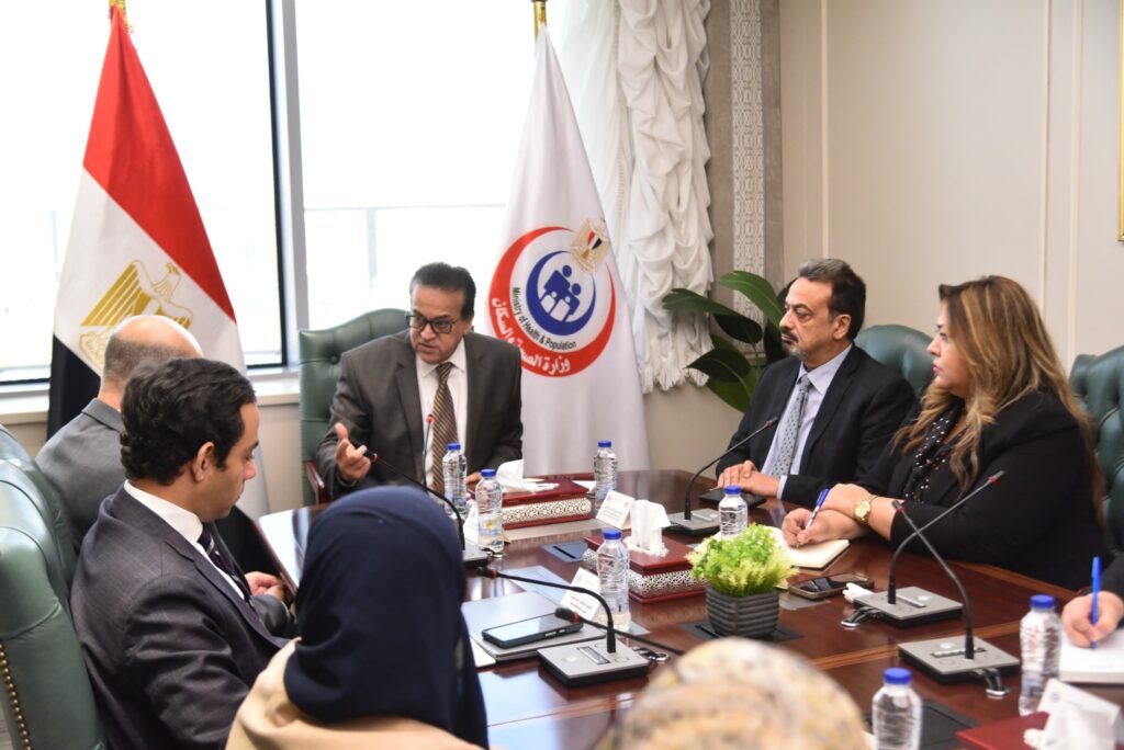 وقال حسام عبدالغفار المتحدث الرسمي لوزارة الصحة والسكان، إن الاجتماع تطرق إلى تعزيز التعاون بملف التنمية البشرية من خلال بحث توفير آليات تستهدف تطوير مهارات وقدرات الأفراد، وذلك بالتعاون مع الجهات والوزرات المنوطة كـ (التربية والتعليم الفني، التعليم العالي، العمل)، وتبني أفكار حديثة طويلة الآمد تستهدف تطوير آليات العمل للمنظومة التعليمية والبرامج والمناهج التعليمية، وفقًا لاستراتيجيات عالمية، والمساهمة في تخريج دفعات تتميز بالجودة والمهارة إلى سوق العمل، وزيادة الإنتاجية، ودفع عجلة الاقتصاد.