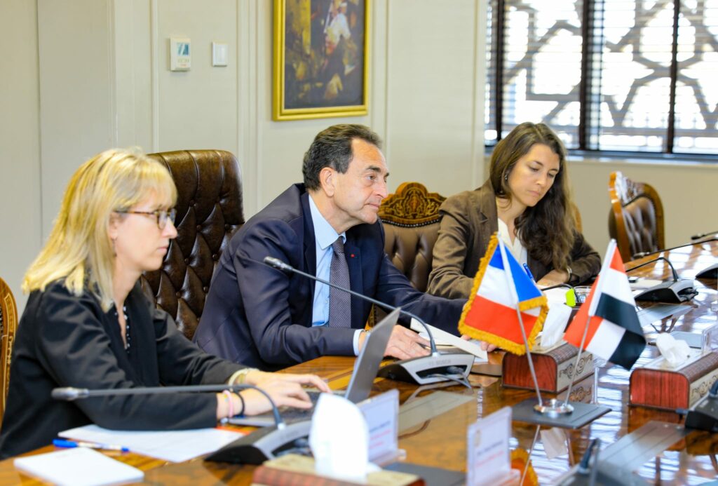 التقت الدكتورة ياسمين فؤاد وزيرة البيئة مع السيد إريك شوفالييه، السفير الفرنسي فى القاهرة لمناقشة آليات التعاون الثنائي في مجال البيئة وتمويل المناخ والتنوع البيولوجي، بحضور السيدة كليمنس فيدال دي لابلاش، مدير عام الوكالة الفرنسية للتنمية في مصر، والسيدة ألكسندرا لاموت مستشارة التنمية المستدامة بالسفارة الفرنسية.