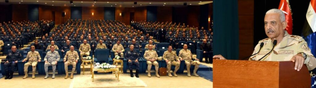 واستعرض الفريق أول عبد المجيد صقر خلال كلمته الأحداث الجارية فى ظل ماتموج به المنطقة من متغيرات حادة ومتسارعة وانعكاساتها على أمن مصر القومي، مشيراً إلى أن قدرة وكفاءة القوات المسلحة ستظل الركيزة الأساسية وقوة الردع الحاسمة فى مواجهة كافة التهديدات المحيطة، وأن رجال القوات المسلحة يمتلكون عقيدة راسخة وعزيمة وإصرار على الوفاء بالمهام الوطنية التى يحملون أمانتها في حماية الوطن والدفاع عن مقدساته مهما كلفهم ذلك من تضحيات.