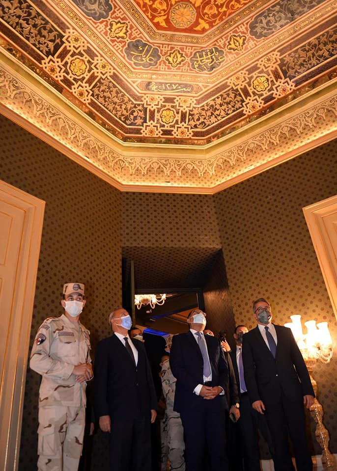 وتفقد رئيس الوزراء كافة مكونات القصر للتعرف على جوانب التطوير، واستمع لشرح من الدكتور خالد العناني، وزير السياحة والآثار، حول آخر تطورات أعمال الترميم بالقصر، حيث أشار إلى أنه تم بدء أعمال ترميم مبنى كشك الجبلاية في أغسطس 2017، فيما تم بدء ترميم مبنى قصر الفسقية في فبراير 2018، حيث تقوم الهيئة الهندسية للقوات المسلحة بالتنفيذ، وأن استشاري المشروع هو مركز هندسة الآثار والبيئة بكلية الهندسة، جامعة القاهرة، كما لفت إلى أنه تم الانتهاء بالكامل من ترميم مبنى كشك الجبلاية، وكذا الانتهاء من الاستلام الابتدائي، كما تم الانتهاء من جميع أعمال ترميم مبنى قصر الفسقية، لافتاً إلى أنه من المخطط افتتاح القصر قريباً.