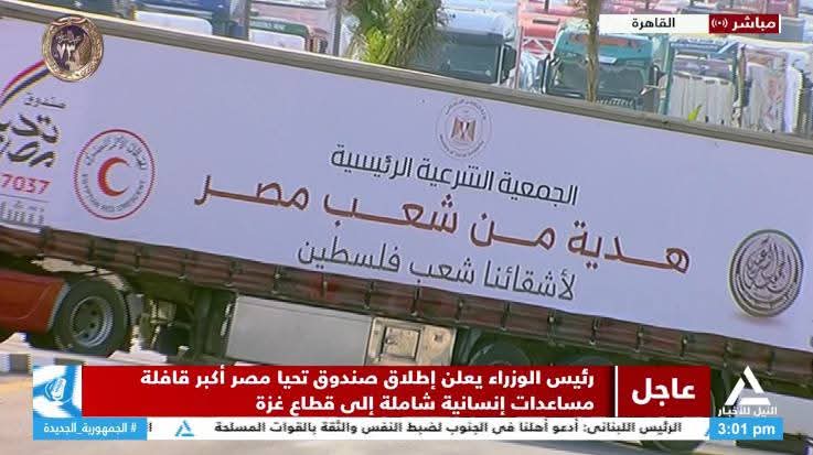 رئيس الوزراء يشهد إطلاق أكبر قافلة مساعدات إنسانية شاملة للأشقاء الفلسطينيين فى قطاع غزة
