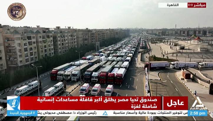 شهد الدكتور مصطفى مدبولي رئيس مجلس الوزراء إطلاق أكبر قافلة مساعدات إنسانية شاملة للأشقاء الفلسطينيين في قطاع غزة من مدينة الاسمرات تحت شعار “نتشارك من أجل الإنسانية” المقدمة من صندوق (تحيا مصر).