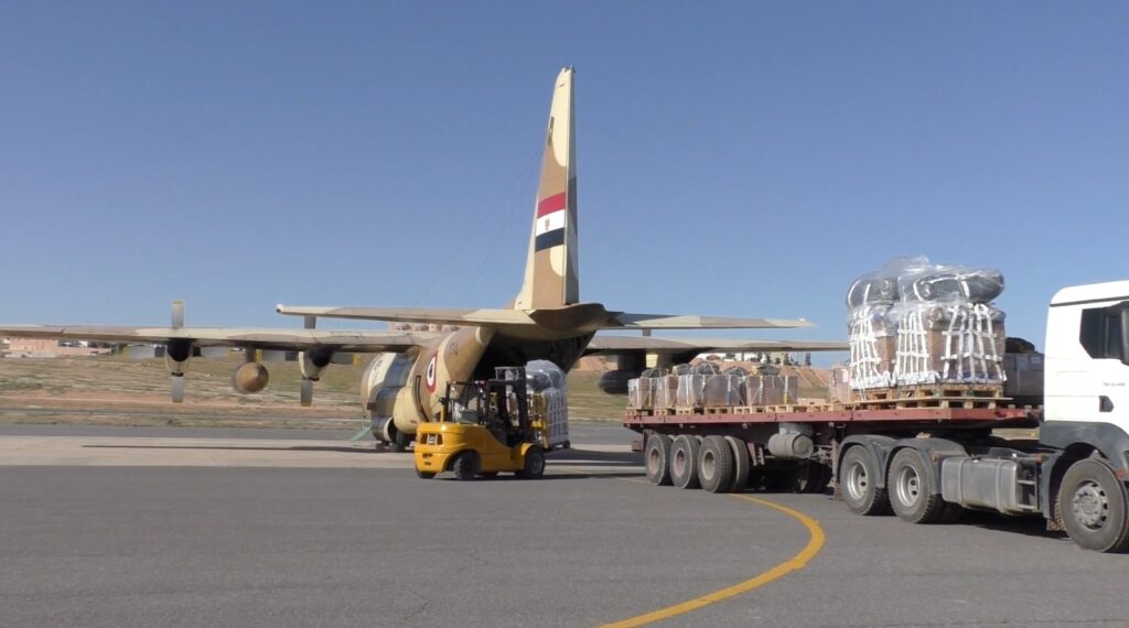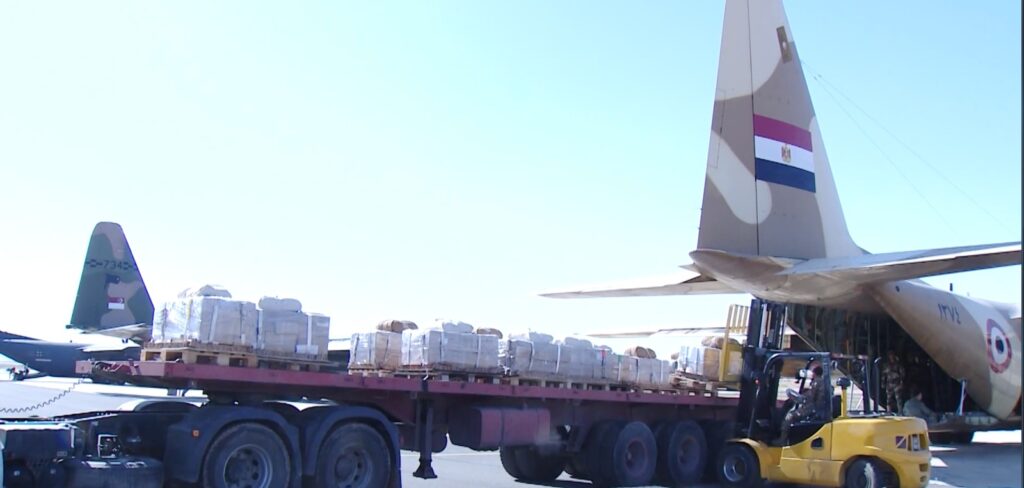 وفي سياق متصل أقلعت عدد من طائرات النقل العسكري على مدار يومي 22 و23 من شهر مارس الجاري من مطار العريش ضمن الجسر الجوي المصري والإماراتي لتنفيذ أعمال الإسقاط الجوي للمساعدات على المناطق التي يصعب وصول المساعدات إليها براً بقطاع غزة.