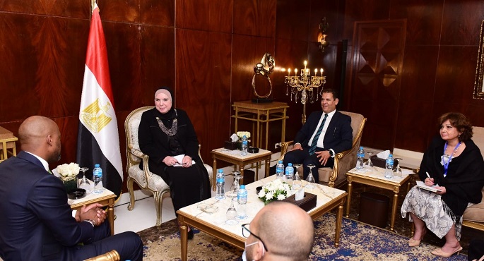 التقت وزيرة التجارة والصناعة نيفين جامع بالسكرتير عام اتفاقية التجارة الحرة القارية الإفريقية وامكيلي ميني وذلك على هامش مشاركتهما بأعمال منتدى “وكالات ترويج الاستثمار في أفريقيا: التكامل من أجل النمو” المقام حالياً بمدينة شرم الشيخ، حيث شارك في اللقاء حاتم العشرى مستشار الوزيرة للاتصال المؤسسى وكل من محمد على مدير التجارة في السلع والمنافسة و ايميلي نيجري مديرة التجارة في الخدمات والاستثمار بسكرتارية الاتفاقية .
