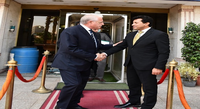 التقي الدكتور أشرف صبحي وزير الشباب والرياضة، اللواء خالد فودة محافظ جنوب سيناء، بديوان عام الوزارة، لبحث تطوير مضمار الهجن بشرم الشيخ.