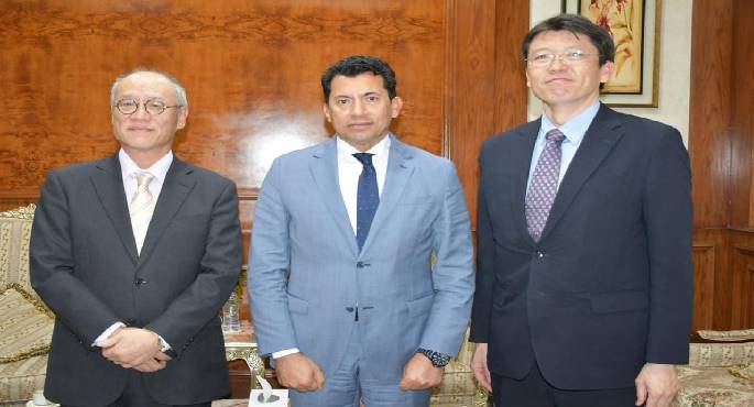 بحث الدكتور أشرف صبحى، وزير الشباب والرياضة، مع إيواى فوميو السفير اليابانى الجديد بالقاهرة، و كاتو كين، رئيس هيئة التعاون الدولي اليابانية “الجايكا” في مصر، تعزيز سبل التعاون المشترك بين مصر واليابان فى المجال الرياضي والشبابي.